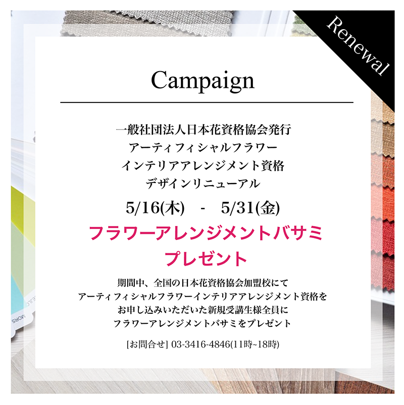 一般社団法人日本花資格協会資格が名所変更しました。 - 2019,5,4
